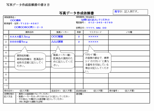 1枚の依頼書に10薬剤の記入が可能ですが、不足する場合は、複数枚に分けてください